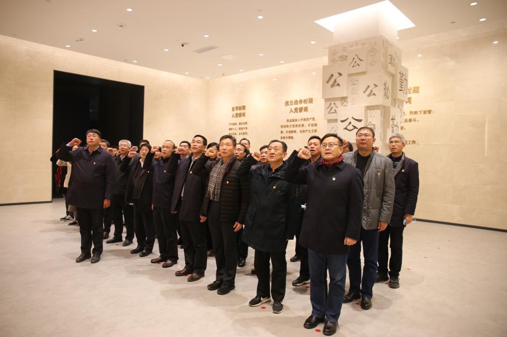 在宣誓厅,全体党员干部面向鲜红党旗,重温入党誓词,砥砺入党初心,筑牢信仰之基。