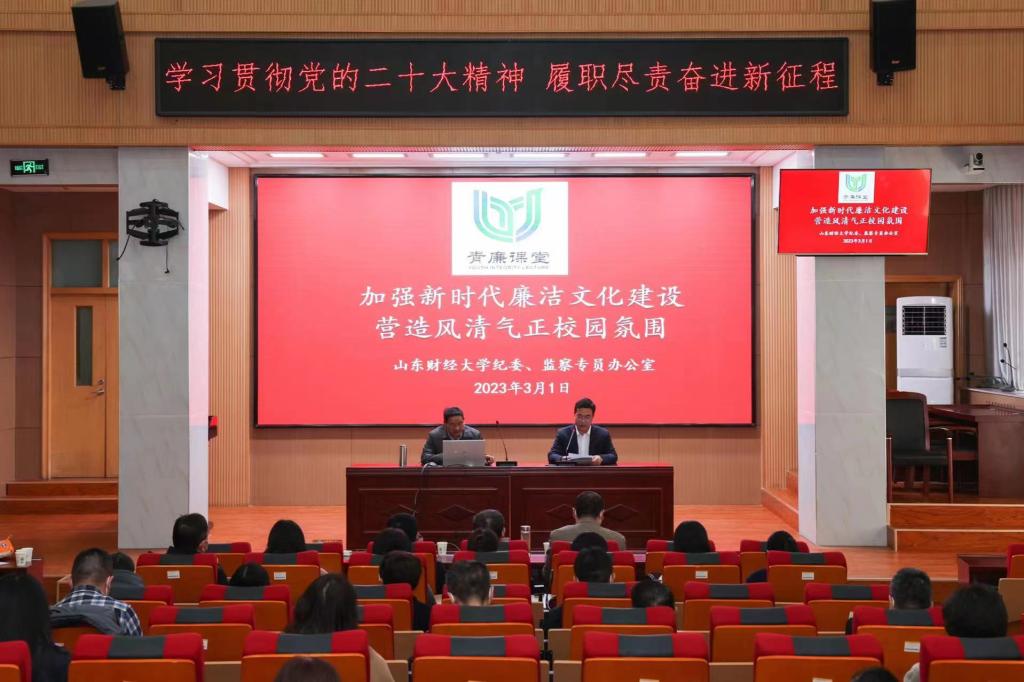 3月1日下午,山东财经大学纪委、监察专员办公室举办纪检监察干部“青廉课堂”。校党委委员、纪委书记、监察专员王福岱出席。